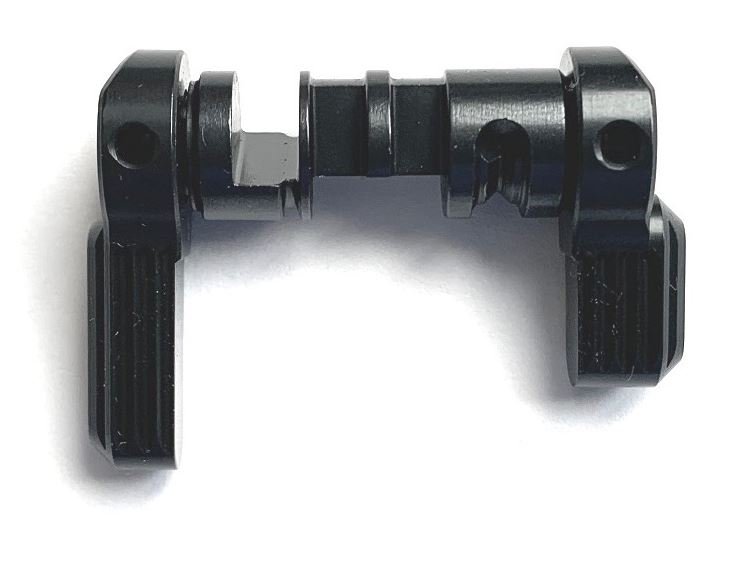 We are known to many for the dimpled pattern we use on some control surfaces (AA, or All Angles, is our designation). As the lever rotates, the user’s finger slides on the lever, anything but serrations along the length of the lever only impedes that movement and creates friction for no benefit. Serrations diagonal or perpendicular to the length of the lever are similarly unhelpful. Serrations parallel to the lever’s length help mitigate lateral movement, and do not impede the finger’s sliding motion. ASF lever’s profile isn’t square, its outer most portion is somewhat tapered for a reason. When the user’s hand holds the pistol grip, the profile of the ASF lever conforms to angle of the thumb’s pad. For our friends and customers that wish to see dimples on the ASF, there is a single dimple on both sides to function as a position indicator (in lieu of a pointer), it’s elegant and simple.